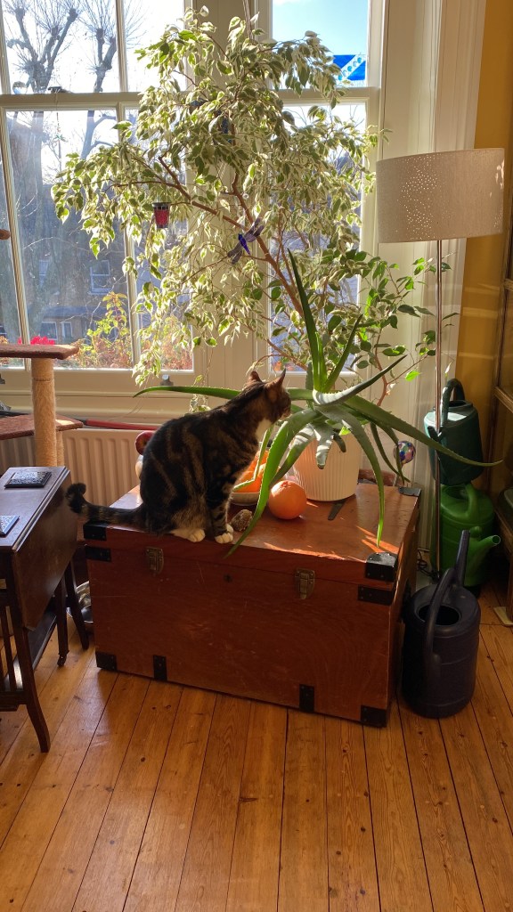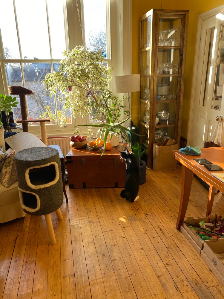 The guy came to collect the tree, the floor is swept and as a little ceremony I burned the needles on the fire. I had thought they’d smell gorgeous. FYI they didn’t smell of anything! Oh well! I thanked the tree for cheering my midwinter and blessed it on its way back to its forest to carry on growing for another year. I also gave thanks for the space the tree going has created and the additional light it has let in.